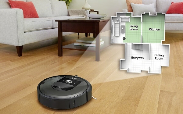 Благодарение на модерната навигация iAdapt 3.0 роботът лесно почиства големи площи. С помощта на камера Roomba i7 разпознава препятствия, мебелировка и избира най-лесния начин, по който да почисти. Чрез системата за интелигентно картографиране Imprint Roomba разпознава всяка една стая, позволявайки ви да я настроите да почиства стая по стая. Почистване от всяка точка чрез мобилно приложение iRobot HOME